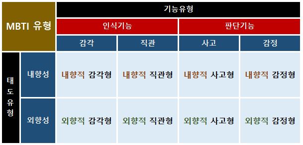 자기 보고식 성격 유형 검사로 16가지 심리 유형 중에 하나로 분류되어 개인의 성격의 구조와 기능을 이해하고자 여러 가지 연구를 진행한 것이 MBTI입니다.