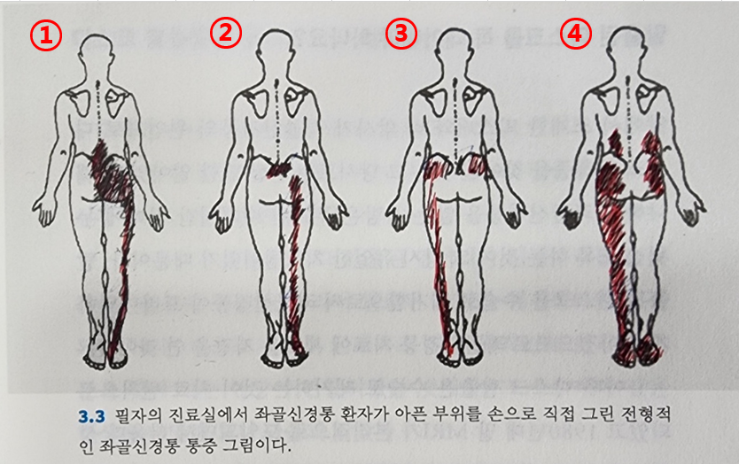 방사통(좌골신경통)이 느끼는 부위