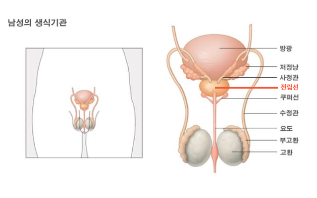 방광의 바로 밑에 있는 생식기관으로 밤톨만한 크기에 무게는 15~25g 정도다