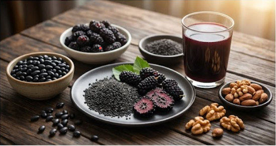 - 블랙푸드: 검은콩, 검은깨, 오디 등에는 '안토시아닌'이라는 강력한 항산화 성분이 풍부하며, 전통적으로도 모발 건강에 좋다고 알려져 있습니다.