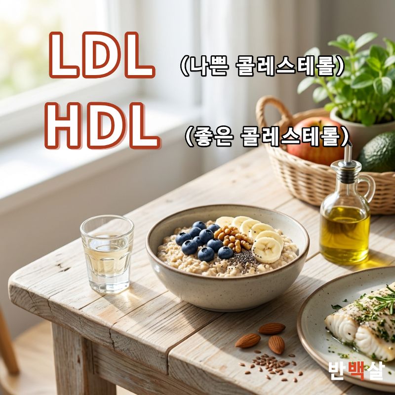 - 적정 체중 유지: 복부 비만은 중성지방을 높이고 HDL을 낮추는 주범입니다. 체중의 5%만 감량해도 콜레스테롤 불균형이 크게 개선됩니다.
